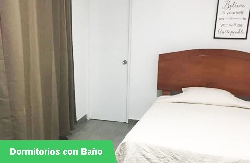 • Habitaciones amplias y cómodas con baño privado cada una, iluminación exterior y mobiliario completo.